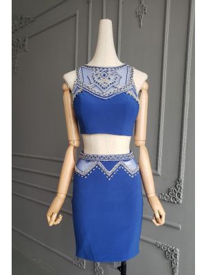 - Sexy Short Mini Two Pieces Royal Blue Jersey Rhinestone Beaded Cocktail Party Dresswas $559.00 Special Price $139.00