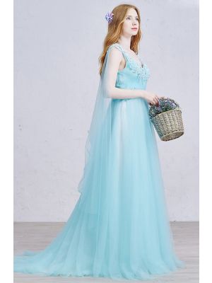 - Chic High Low Off The Shoulder Beaded Flowers Aqua Tulle Prom Evening Dress With Detachable Trainwas $899.00 Special Price $169.00