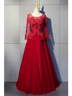 - Elegant Scoop Long Sleeve Corset Red Tulle Beaded A Line Prom Evening Dress With Appliqueswas $725.00 Special Price $149.00