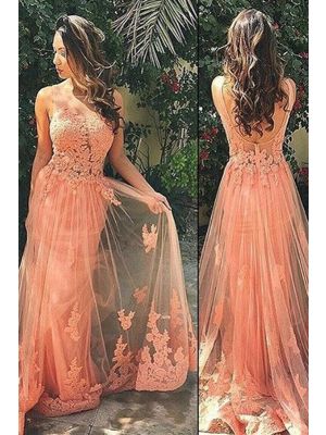 - Sexy A Line Prom Evening Dress Scoop Low Back Coral Tulle Lacewas $609.00 Special Price $135.00