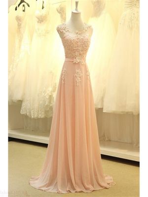 - Elegant A Line Long Blush Pink Chiffon Tulle Applqiue Prom Dress With Sashwas $440.00 Special Price $125.00