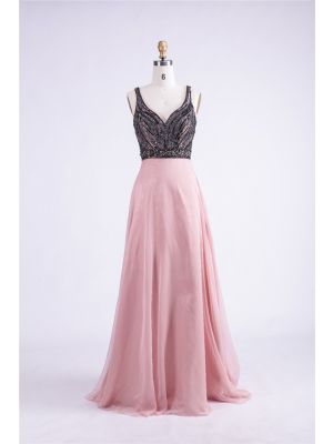 - Sheath Open Back Long Dusty Rose Chiffon Black Beaded Prom Dresswas $660.00 Special Price $164.00