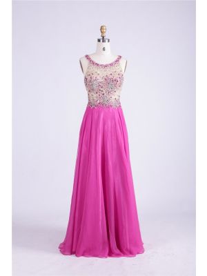 - Sheath Scoop Neck Keyhole Back Long Fuchsia Chiffon Tulle Beaded Prom Dresswas $660.00 Special Price $167.85