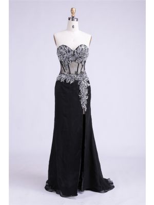 - Sheath Sweetheart High Slit See Through Black Tulle Beaded Prom Dresswas $650.00 Special Price $160.00