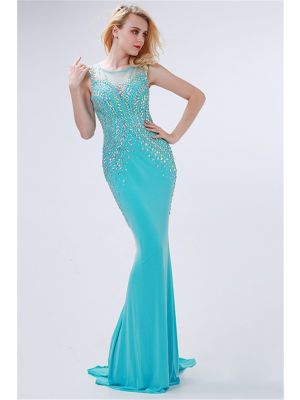 - Gorgeous Sheath Scoop Neck Long Aqua Jersey Rhinestone Beaded Prom Dresswas $890.00 Special Price $191.55