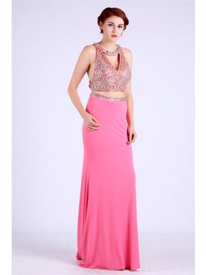 - Sexy Sheath Cutout Two Piece Long Hot Pink Jersey Beaded Prom Dresswas $520.00 Special Price $175.00