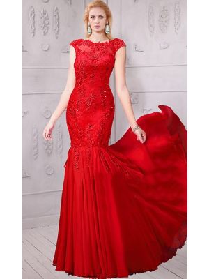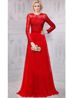 - A Line High Neck Red Chiffon Lace Beaded Long Sleeve Evening Prom Dresswas $600.00 Special Price $137.00
