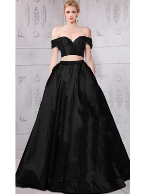 - A Line Off The Shoulder Black Taffeta Two Piece Evening Prom Dresswas $595.00 Special Price $135.00