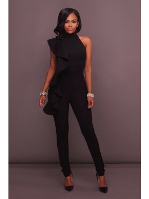- Asymmetrical High Neck Black Ruffle Formal Evening Jumpsuit For Womenwas $88.00 Special Price $35.00