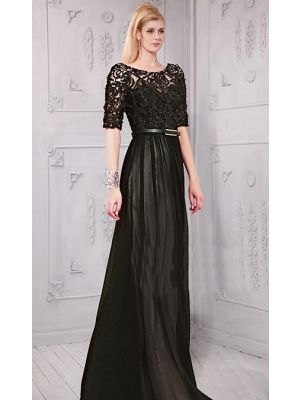 - Elegant Bateau Neckline Black Tulle Lace Sleeve Evening Dress With Beltwas $650.00 Special Price $149.99
