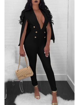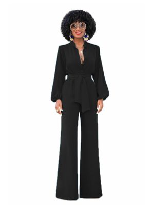 - Fashion Collared Long Sleeve Wide Leg Black Women Jumpsuit With Sashwas $140.00 Special Price $37.50