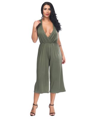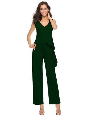- V Neck Ruffle Dark Green Stretch Evening Jumpsuit For Womenwas $140.00 Special Price $34.50