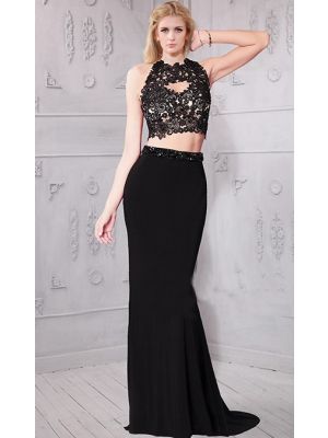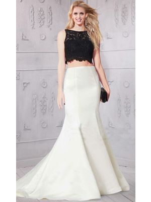 - Mermaid Sleeveless Black Lace White Satin Two Piece Evening Prom Dresswas $505.00 Special Price $140.00