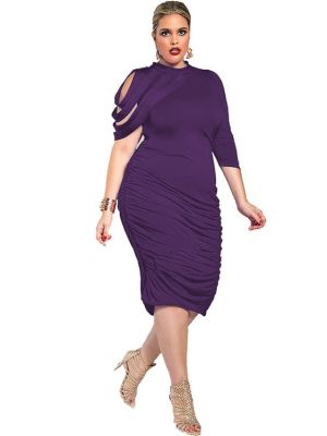- High Neck Tea Length Purple Jersey Ruched Plus Size Dress With Sleeveswas $60.00 Special Price $29.50
