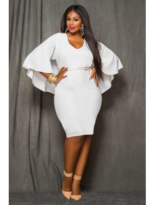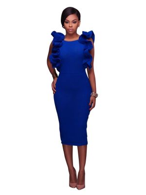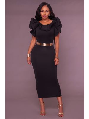 - Tea Length Black Ruffle Stretch Women Casual Evening Dress Metal Beltwas $90.00 Special Price $35.00