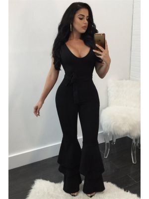 - Scoop Neck Sleeveless Tiered Ruffle Bodycon Burgundy Jumpsuit With Sashwas $90.00 Special Price $32.00