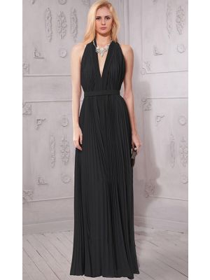 - Sheath Halter Backless Long Black Chiffon Pleated Evening Dress With Beltwas $395.00 Special Price $107.00