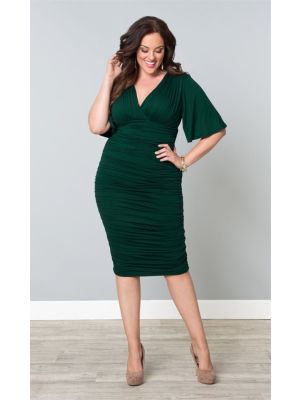 - V Neck Tea Length Dark Green Spandex Ruched Plus Size Women Dress With Sleeveswas $70.00 Special Price $24.40
