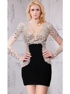 - Column Illusion Neckline Sheer Back Long Sleeve Rhinestone Beaded Prom Dresswas $500.00 Special Price $179.90