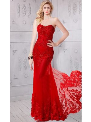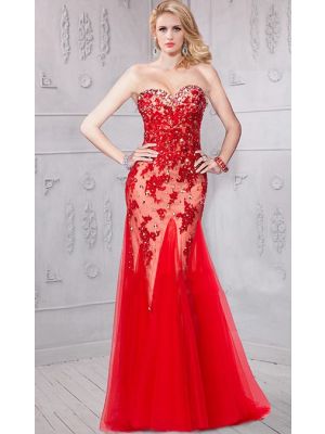 - Stunning Fitted Sweetheart Long Red Tulle Lace Beaded Evening Prom Dresswas $680.00 Special Price $155.00