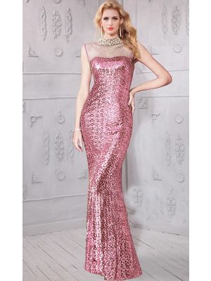 - High Neck Keyhole Back Sleeveless Long Pink Sequin Sparkly Evening Prom Dresswas $495.00 Special Price $119.99