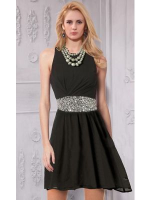 - Jewel Neckline Sleeveless Short Little Black Chiffon Beaded Prom Dresswas $390.00 Special Price $107.50