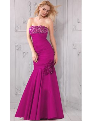 - Mermaid Strapless Fuschia Taffeta Beaded Evening Prom Dress With Flowerswas $500.00 Special Price $130.00