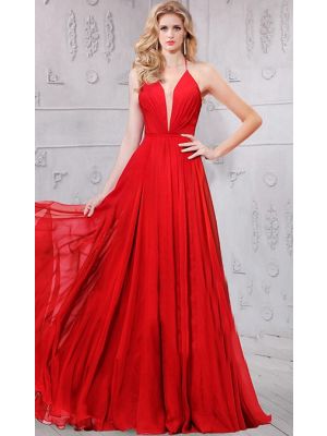 - Plunging Neckline Halter Open Back Long Red Chiffon Evening Prom Dresswas $400.00 Special Price $99.00