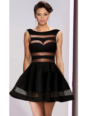 - Sexy Bateau Neckline Short Black Satin Tulle Panel See Through Prom Dresswas $455.00 Special Price $107.99