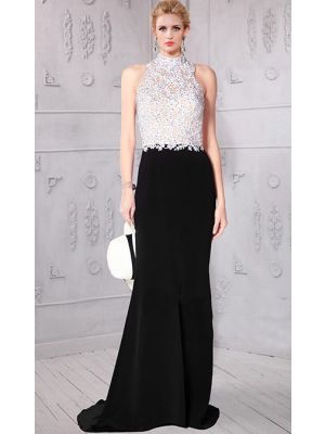 - Sheath Halter Backless Black Satin White Lace Beaded Evening Dresswas $490.00 Special Price $147.85