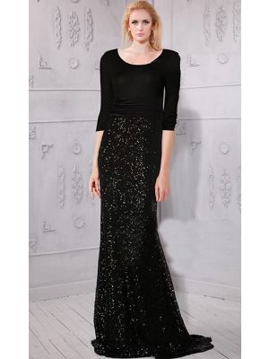 - Sheath Scoop Neck Long Black Sequin Jersey Bridesmaid Evening Dress With Sleeveswas $500.00 Special Price $125.00