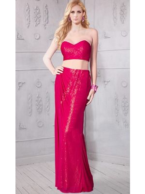 - Sheath Strapless Two Piece Red Sequin Chiffon Ruched Evening Dresswas $420.00 Special Price $132.00