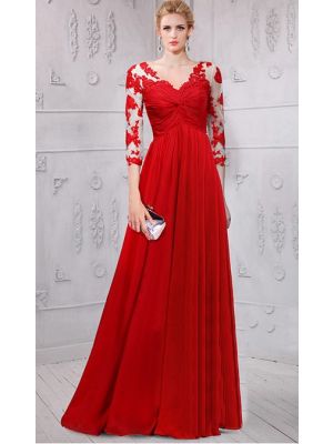 - Sheath V Neck Empire Waist Long Red Chiffon Evening Prom Dress With Lace Sleeveswas $495.00 Special Price $139.99