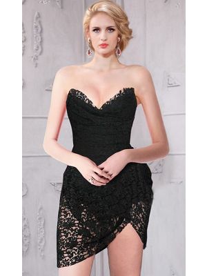 - Strapless Sweetheart Asymmetrical Hem Short Mini Black Lace Party Dresswas $380.00 Special Price $99.00