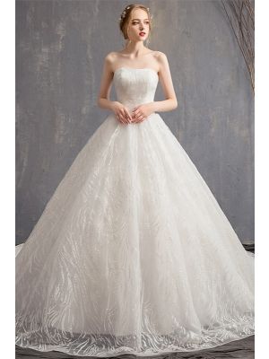 - Unique See Through Ball Gown Strapless White Tulle Lace Beaded Wedding Dress With Court Trainwas $859.00 Special Price $175.00