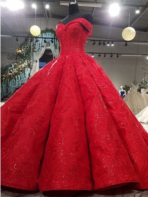 - Elegant Ball Gown Off The Shoulder Corset Sequined Red Lace Wedding Dresswas $925.00 Special Price $249.00