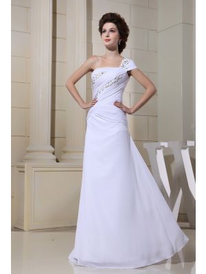 - Elegant A Line One Shoulder Pleated White Chiffon Wedding Dress Bridal Gown With Flowerswas $1,006.00 Special Price $179.00