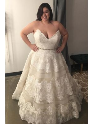 - Princess A Line Spaghetti Straps Ivory Lace Beaded Plus Size Wedding Dress With Buttonswas $1,799.00 Special Price $369.00