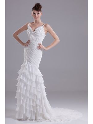 - Gorgeous Mermaid V Neck Spaghetti Straps Tiered White Chiffon Beach Destination Wedding Dresswas $889.00 Special Price $189.00