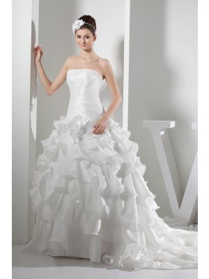 - Elegant A Line Strapless Tiered Satin Organza Wedding Dress Bridal Gown With Flowerwas $988.00 Special Price $197.00