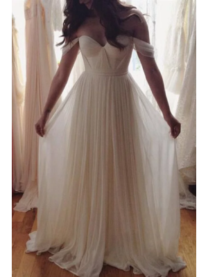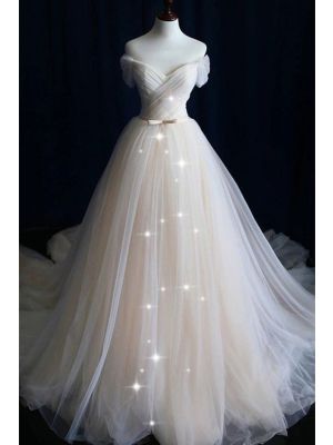 - Elegant Ball Gown Sweetheart Off The Shoulder Champagne Tulle Wedding Dress Bridal Gown With Bowwas $978.00 Special Price $189.00