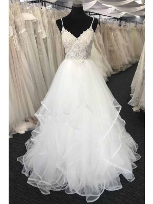 - Elegant Ball Gown V Neck Spaghetti Straps Lace Bodice Ruffled Tulle Skirt Wedding Dress Bridal Gownwas $965.00 Special Price $218.00
