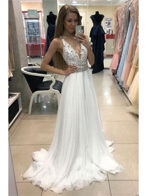 - Elegant A Line V Neck Lace White Chiffon Beaded Wedding Dress Bridal Gownwas $956.00 Special Price $179.00