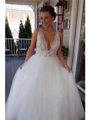 - Princess Ball Gown Wedding Dress Deep V Neck Sheer Back With Appliques And Beadingwas $748.00 Special Price $185.00
