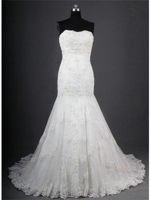 - Elegant Mermaid Strapless Tulle Lace Beaded Corset Wedding Dress Court Trainwas $1,220.00 Special Price $266.00