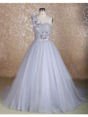 - Beautiful Ball Gown One Shoulder Silver Tulle Flower Wedding Dress Lace Up Backwas $950.00 Special Price $204.00