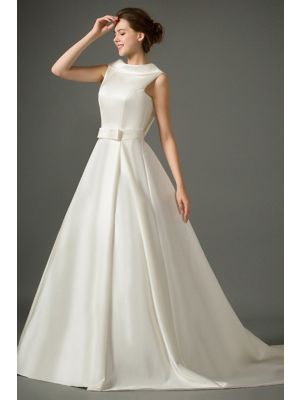 - A Line High Neck Collar Low Back Satin Wedding Dress With Bow Sash No Lacewas $950.00 Special Price $185.00