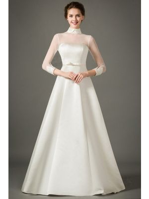 - A Line High Neck Collar Sheer Tulle Sleeve Satin Wedding Dress Bow Beltwas $800.00 Special Price $170.00