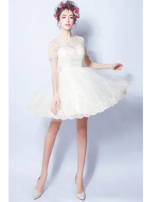 - A Line High Neck Short Sleeve Light Champagne Tulle Lace Wedding Party Bridesmaid Dresswas $350.00 Special Price $95.00