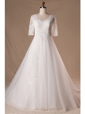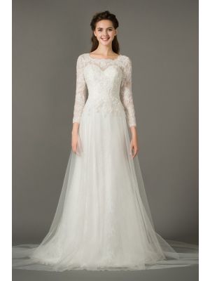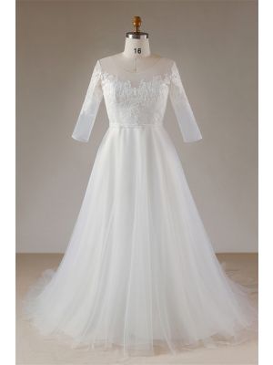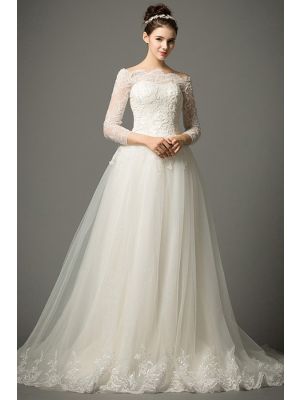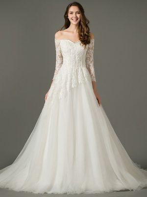 - A Line Off The Shoulder 3 4 Sleeve Tulle Lace Wedding Dress With Long Trainwas $1,290.00 Special Price $235.00
